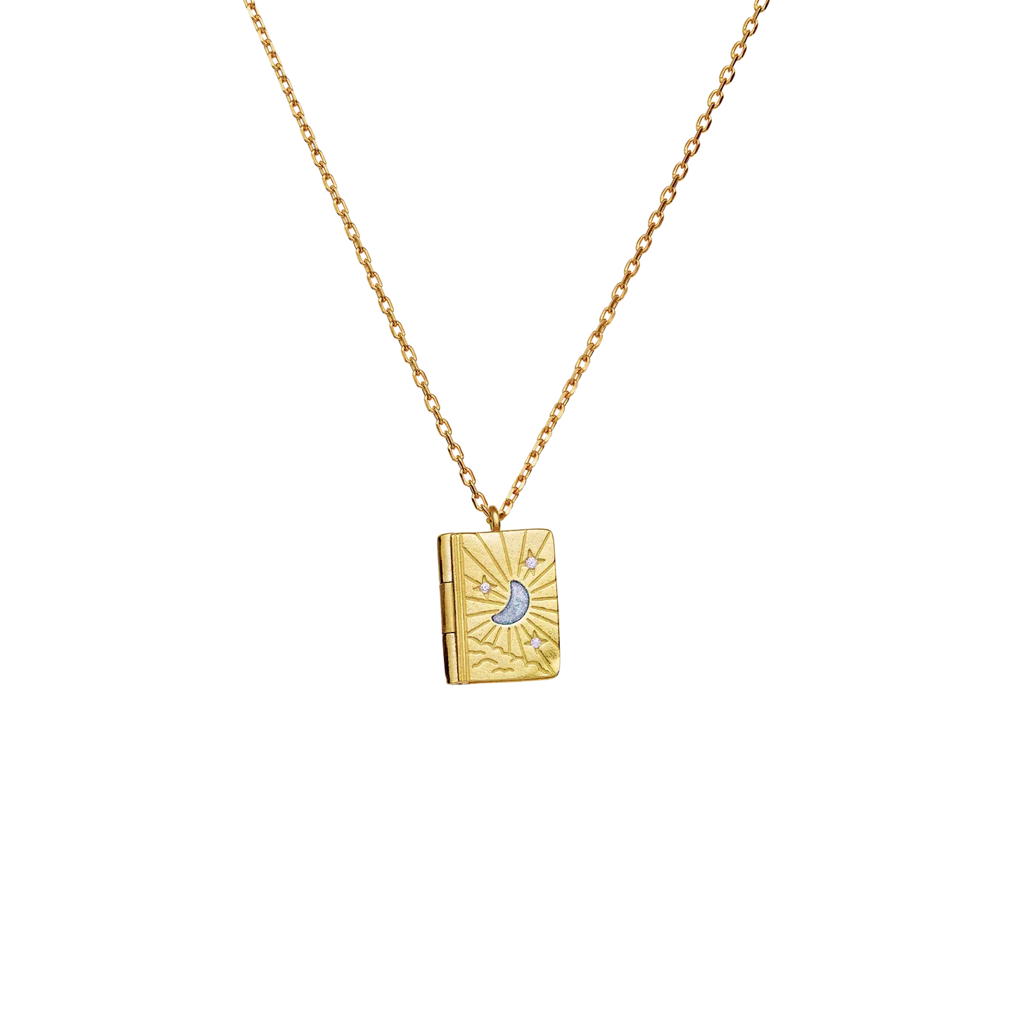 Materialer: Resirkulert sterlingsølv (925) belagt med 18 karat gull, zirkonia og emalje Størrelse: Kjedelengde 44 - 46 cm Anhengets størrelse: høyde 13 mm, bredde 10 mm