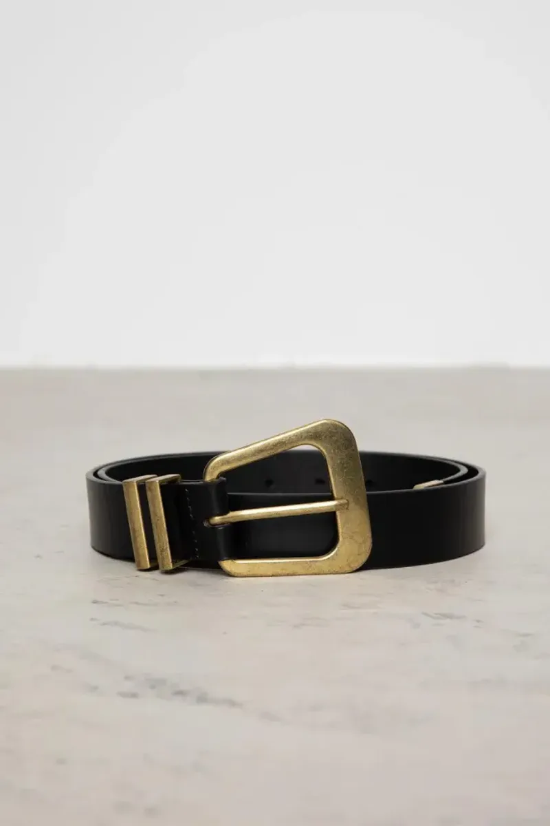 Bennet-beltet har en metallspenne i sølv- og gulltoner for en dristig effekt. Det er laget av 100 % kuskinn. Bruk det til å gi bukser og kjoler definisjon.