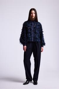 Skreddersydd av skarp bomull, er den gjennomsiktige bunnen utsmykket med teksturerte sirkulære applikasjoner, noe som skaper et skulpturelt spill av lys og skygge.